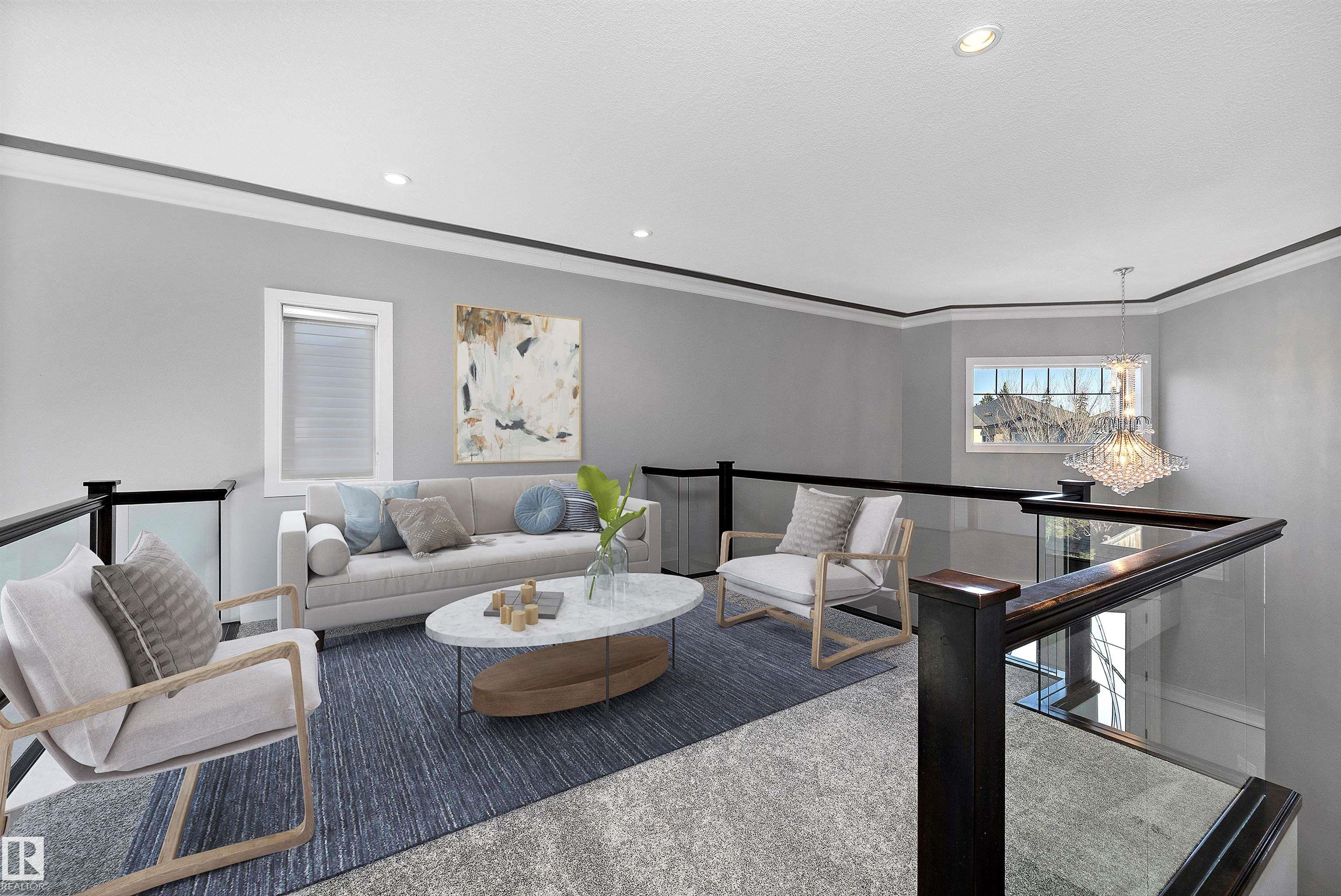 Luxury living defines this Allard home with architectural impact & refined finishes. Dramatic open-to-below foyer with glass railing leads to a bright open-concept main floor with rich hardwood, striking fireplace & expansive windows. Chef’s kitchen features full-height cabinetry, stone countertops, premium stainless steel appliances & a large island ideal for entertaining. Rare main floor bedroom with full bathroom is perfect for guests or intergenerational living. Upstairs offers a spacious bonus room, up...