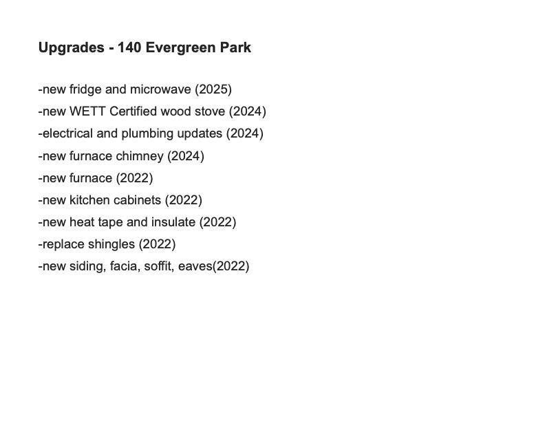 Welcome to this beautifully maintained home in the family-friendly Evergreen Community! Featuring 3 bedrooms and 2 bathrooms, this property offers comfort, space, and peace of mind with extensive upgrades over the years, including plumbing, furnace, electrical, kitchen, roof, siding, deck, insulation, and more. The bright living room is highlighted by a brand new WETT certified wood stove, perfect for cozy evenings. The updated kitchen comes equipped with newer cabinets & stove and a brand new fridge and mi...