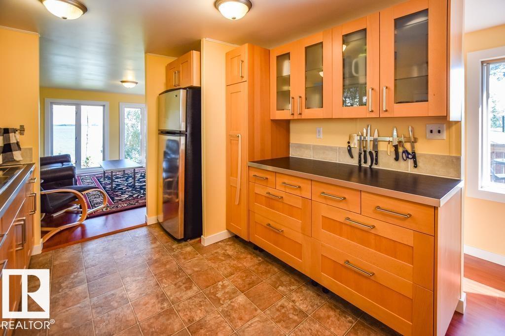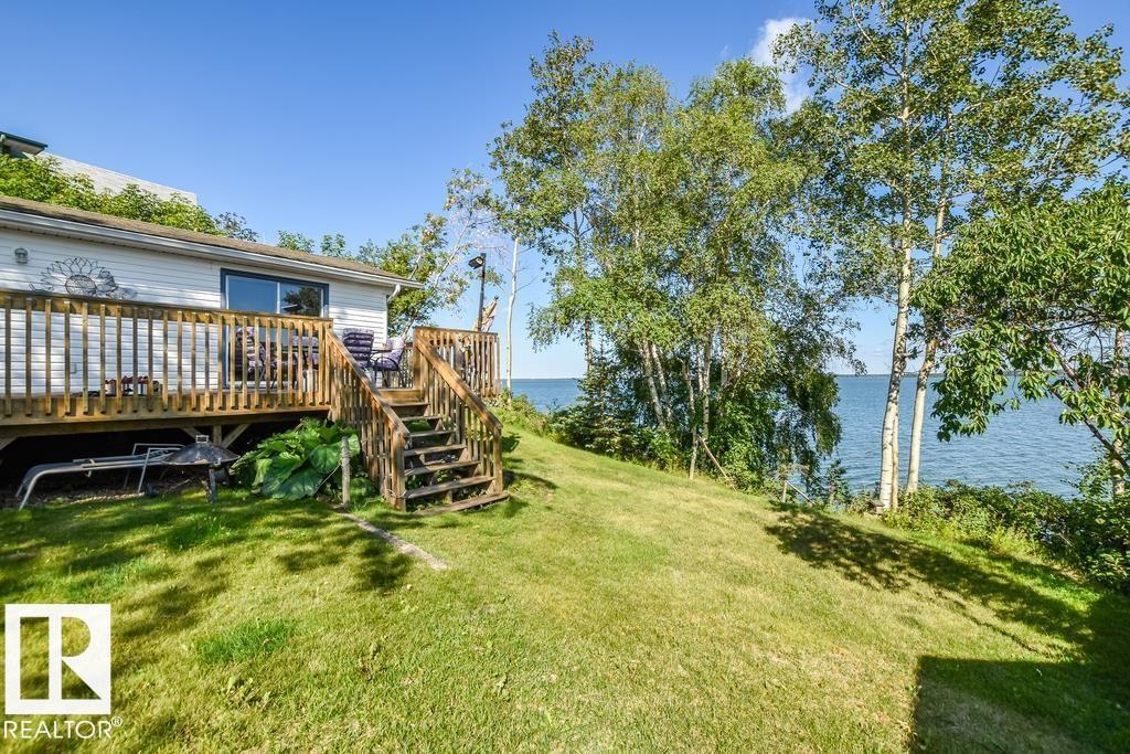 LAKEFRONT LIVING AT ITS BEST! This beautifully updated property is the perfect summer retreat or an ideal year-round home. Step inside to a spacious front living room featuring breathtaking lake views that create a warm and inviting atmosphere. The galley-style kitchen is both functional and stylish, complete with a gas cooktop and soft-close cabinetry. A bright dining area, two comfortable bedrooms, plus a versatile den provide plenty of space for family and guests. The main 4-piece bathroom offers a touch...