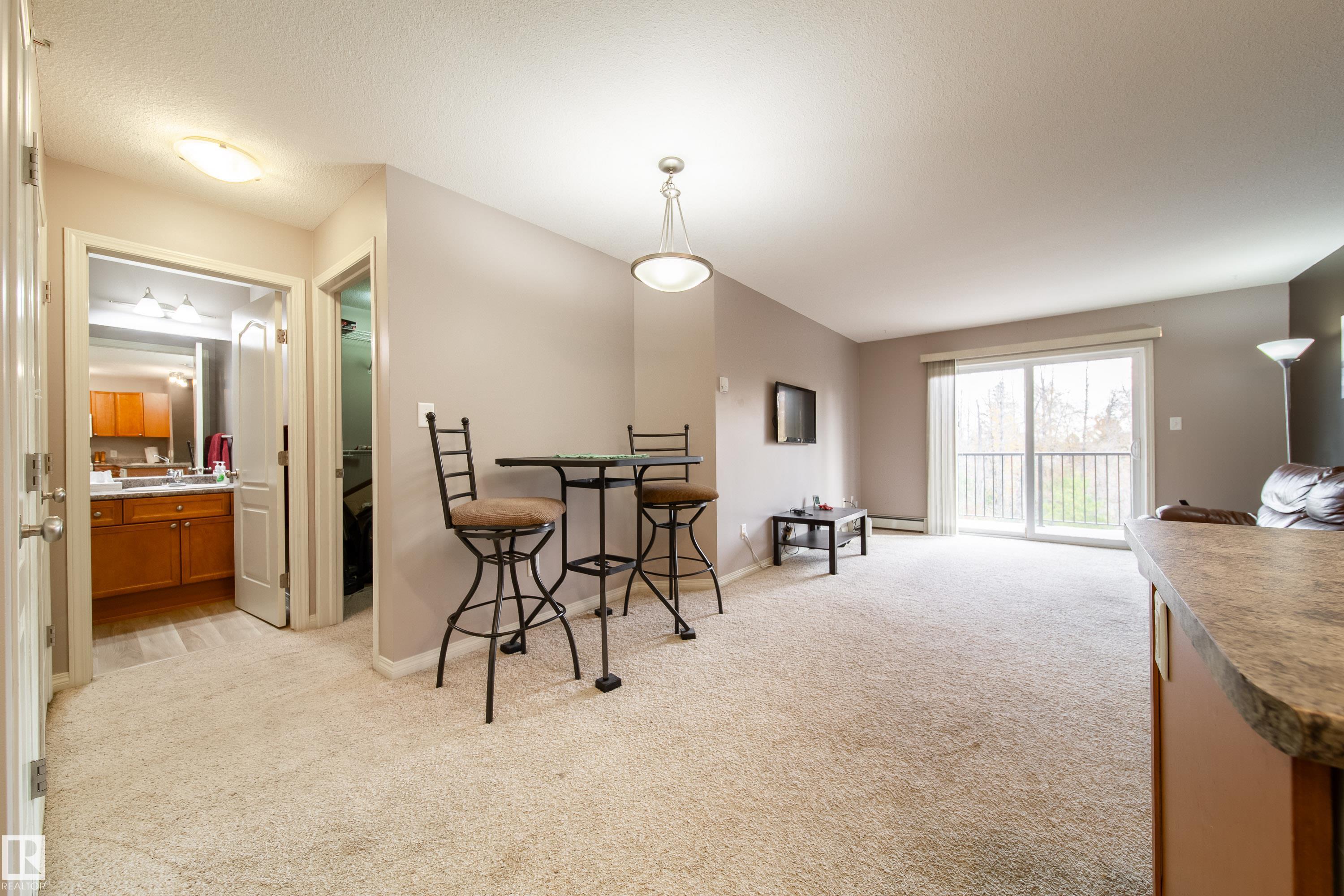 Amazing TOP FLOOR Condo in desirable Stony Plain! Fantastic 2 Bed 2 bath condo offers a floor plan that maximizes the square footage with a great, open-concept floor plan. From the well laid out kitchen with breakfast bar to the dining area to the living area that has patio doors leading outside, this unit offers so much! The east-facing deck looks onto trees & is the perfect spot for morning coffee or evening BBQs alike! The primary bedroom has walk thru closets to the full 4pc ensuite. The 2nd bedroom is ...