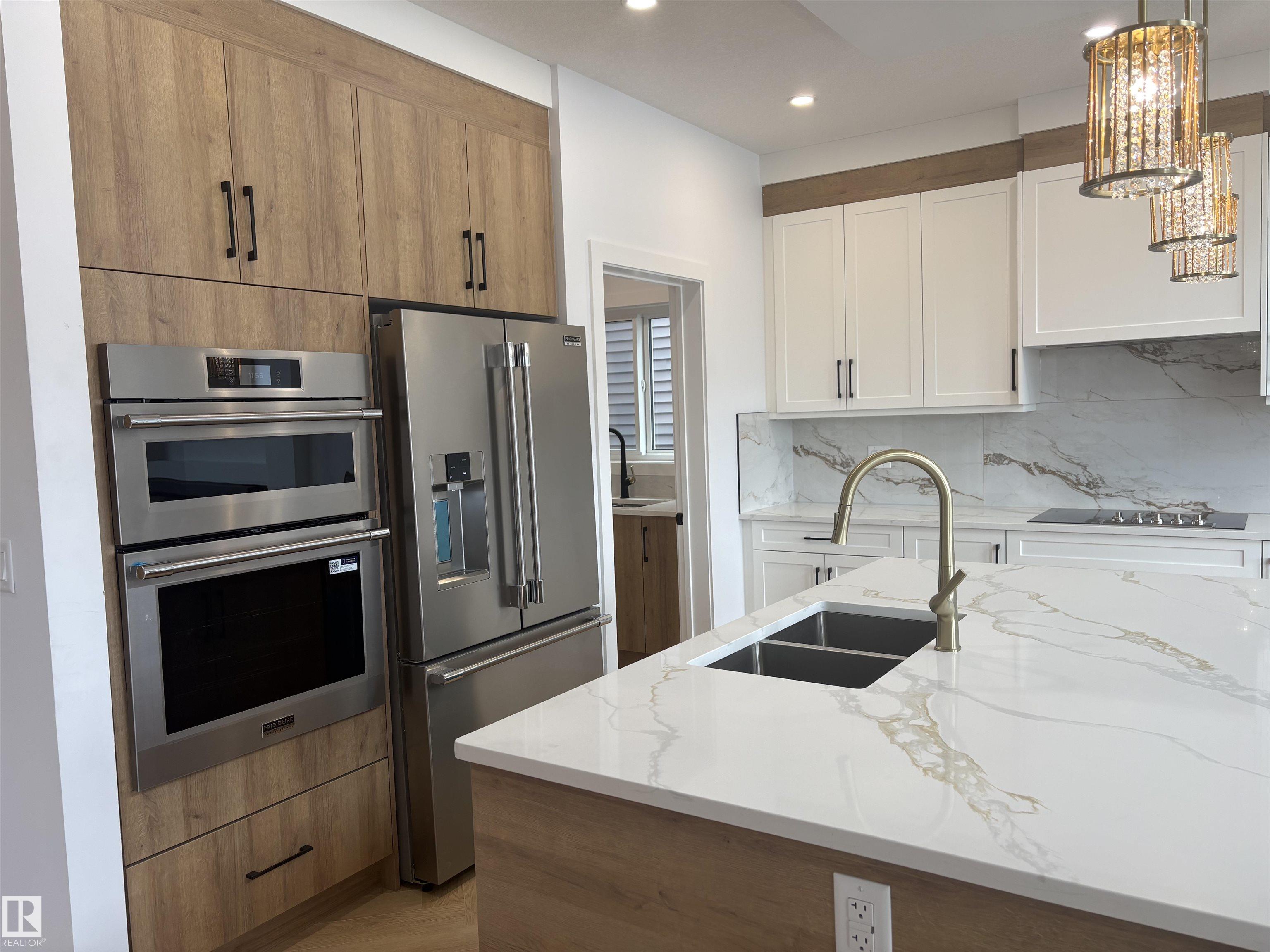 Stunning 2-storey WALKOUT home offering modern living space with serene POND views. Features a grand open-to-above living area with massive windows for natural light, elegant kitchen with large island, plus a massive spice kitchen. Main floor includes a full bedroom & bathroom—perfect for guests or extended family. Upstairs boasts 2 master bedrooms with luxurious ensuites, 2 additional bedrooms, a bonus room, and full bath. Additional features include 8' high front entry door, separate side entrance (future...